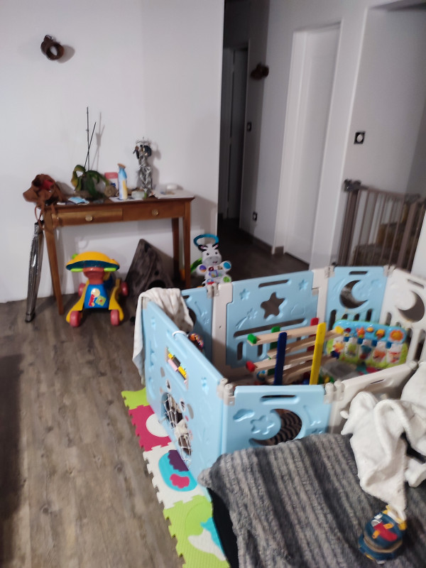 Donc pas d'aménagement spécifique une fois le tapis enlevé. Mais nous avons un plain pied, ça change la donne. Les enfants circulent aisément et sans risque d'une pièce à l'autre.