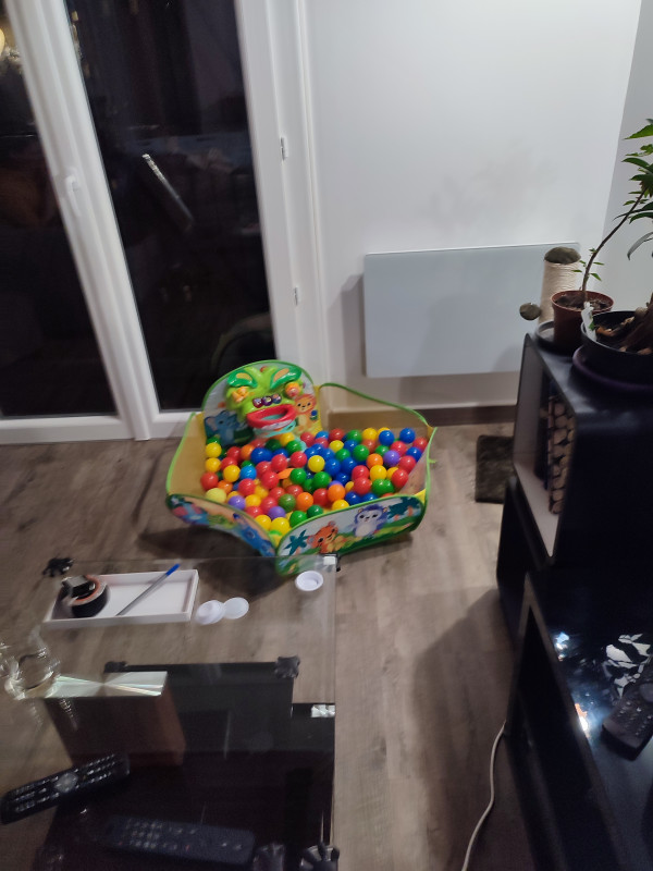 Les jouets sont autorisés dans le salon la journée. Hier il y avait une cabane à balle (que mon fils s'est fait un malin plaisir d'eparpiller partout...200 balles