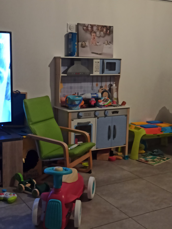 Nous projetons de construire une extension cette année et si c'est faisable, les enfants auront une salle de jeu. Ca permettra de libérer un peu leur chambre, notamment avec les articles de motricité.