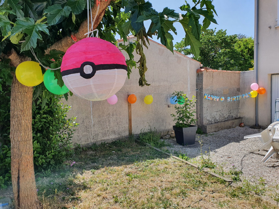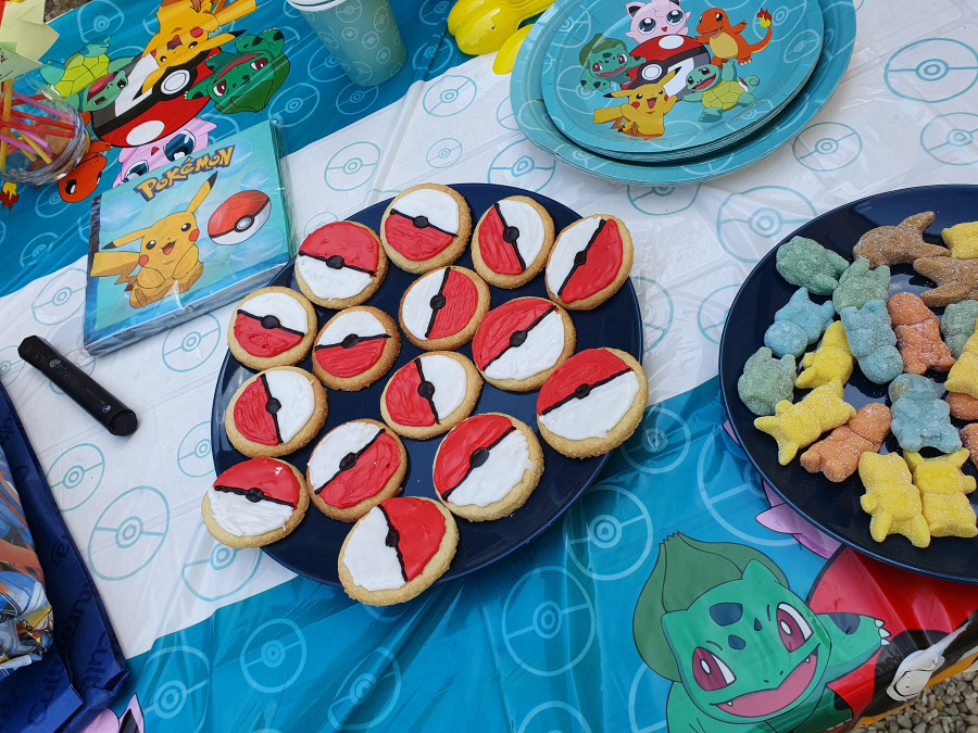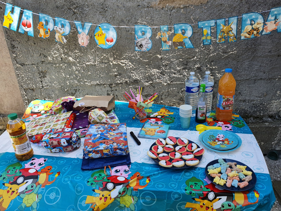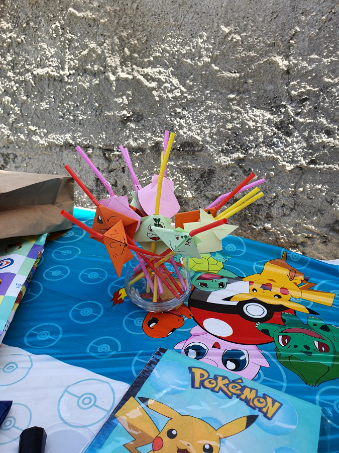 allison44 Candice avait demandé un thème "pokémon" pour son anniversaire avec une piñata... j'avais trouvé un kit sur amazon avec les assiettes, les verres, une guirlande, des ballons, une nappe et des trucs à mettre sur le gâteau. J'ai fabriqué la piñata avec une boule chinoise, on a fait des déco pour mettre sur les pailles (avec les prénoms) et de la glace royale sur des sablés, des bonbons pokémon. Ça a beaucoup plu! Et nous ça nous a bien amusé.