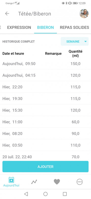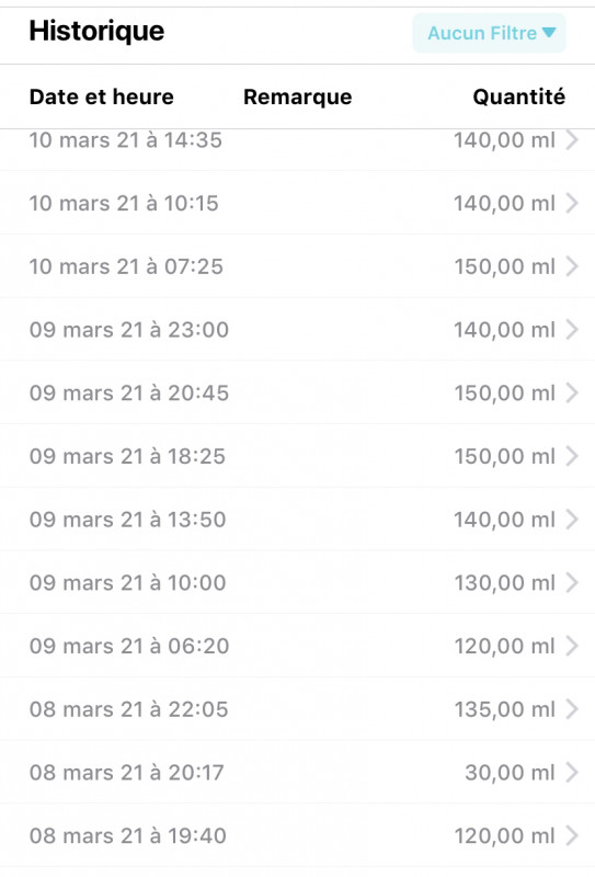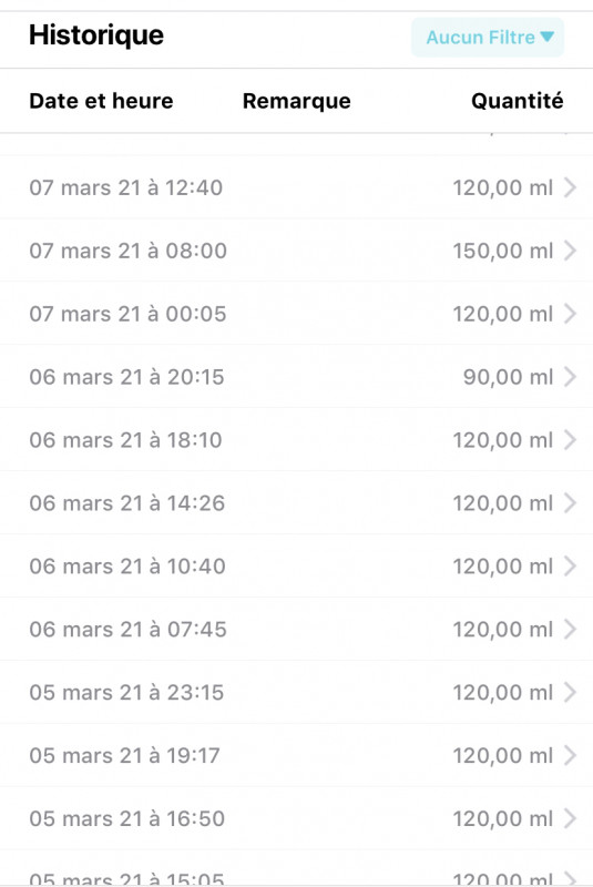 Et en même temps, en journée, elle boit des biberons plus petits, parfois juste des 60ml.