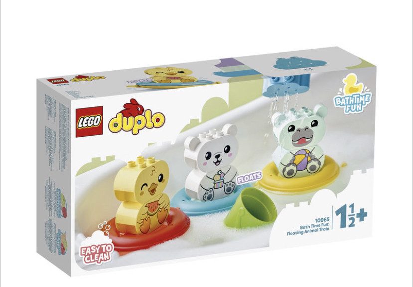 Dans le bain il a des duplos de bain et des jeux de plage petit format aussi (un moulin à eau, une pelle trouée...).
