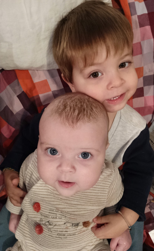Il a voulu porter sa soeur, elle sourit et la il me regarde "elle est contente Colette". Oui mon grand, elle adore que tu t'occupes d'elle. C'est vraiment cool de les voir communiquer.