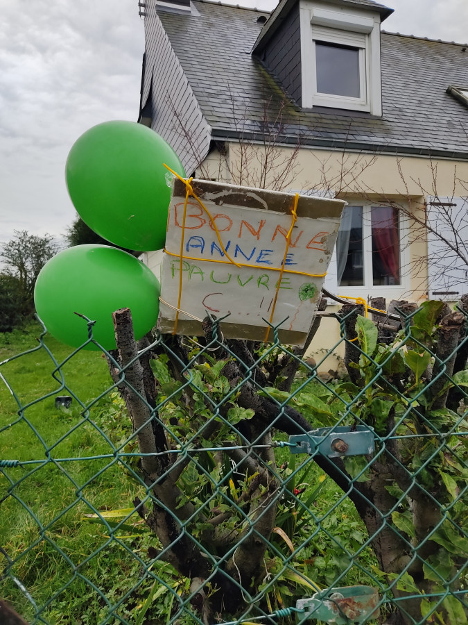 Ici le 31 a été obscurcit par notre voisin d'en face (le même qui déposait des crottes de chat devant chez nous)...il a accroché ça sur son grillage, juste devant notre portail...