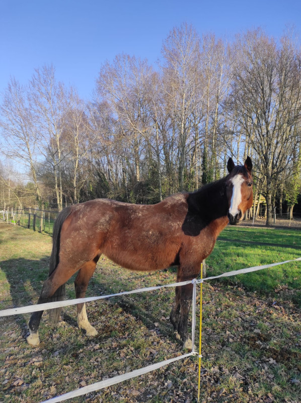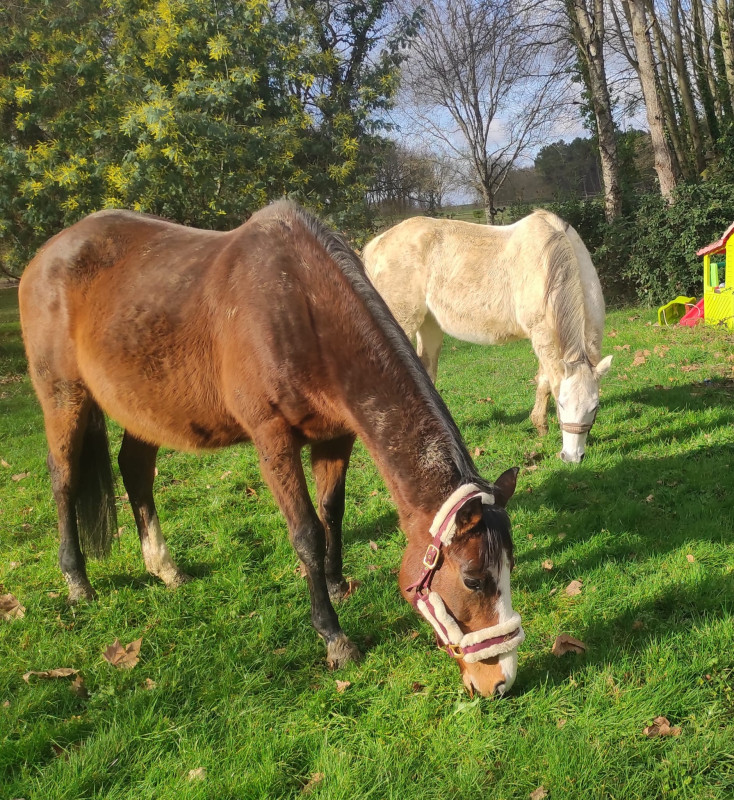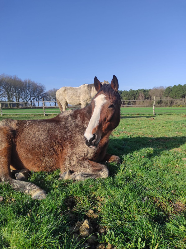 On a commencé le travail à pied tranquillement, elle y est très réceptive. J'attends qu'il fasse un peu meilleur pour monter! Je me suis aménagée un espace carrière en herbe de 20X40 qui va me permettre de grimper dessus et travailler un peu à la maison avant de sortir puisqu'elle n'a pas travaillé depuis le premier confinement (cela dit je l'ai montée en extérieur lors de l'essai, elle avait pas mal de jus mais ça s'est bien passé :)).