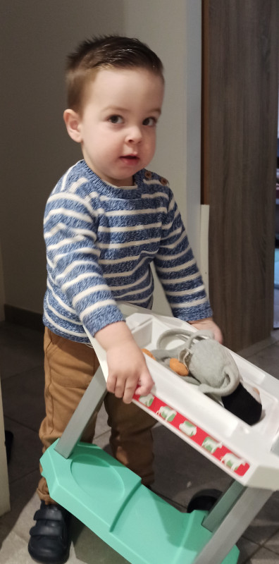 On va tenter de le coucher un chouille plus tard mais bon à 19h il pleure déjà d'épuisement.