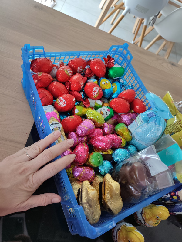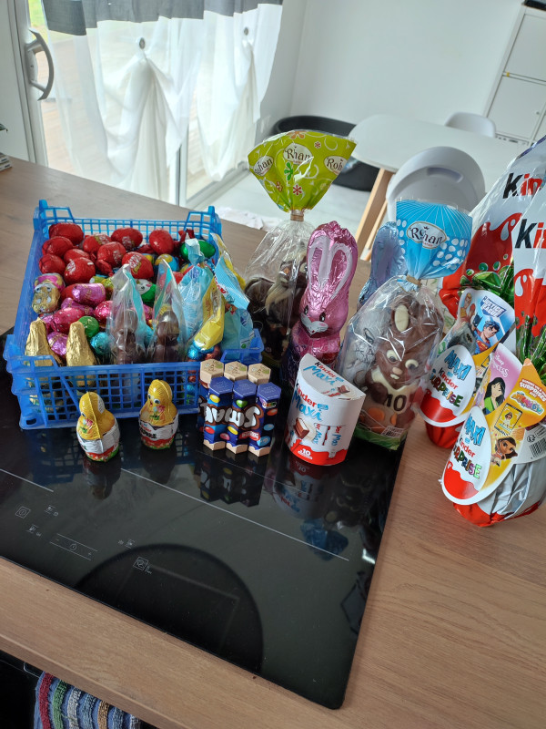 On a quand même chassé les ?ufs chez mes BP ensuite puis chez mes parents. Et hier on a trié/rangé pas mal la maison; j'en peux plus que ce soit le bazar en permanence (et je parle pas de jouets d'enfants !). C'est incroyable on se rendait pas compte avant parce qu'on bossait hors de la maison mais mes tendances bordéliques et les troubles de l'attention de mon mari sont dévastateurs, on peut retourner la maison en une journée c'est un truc de fou