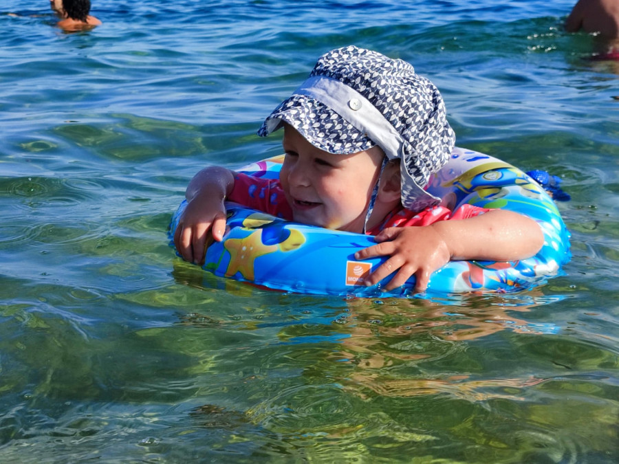 manoncheval L'été dernier, mon fils qui avait 2 ans et 11/12 kgs s'est éclaté avec une bouée toute simple comme celle-ci ! On avait tenté d'autres aides à la flottaison mais rien ne lui plaisait, sauf ça!