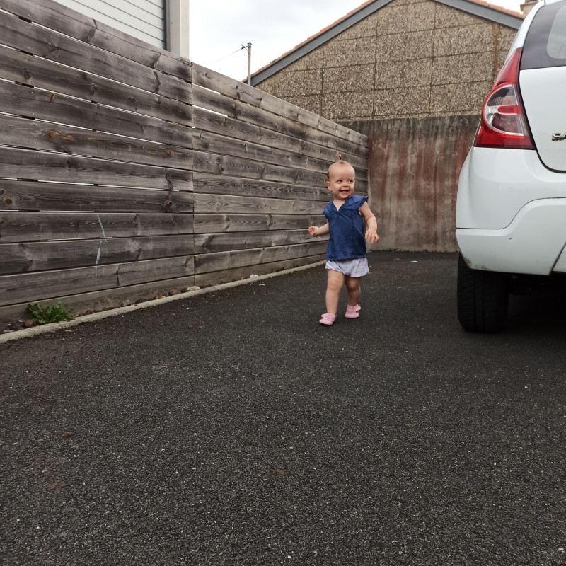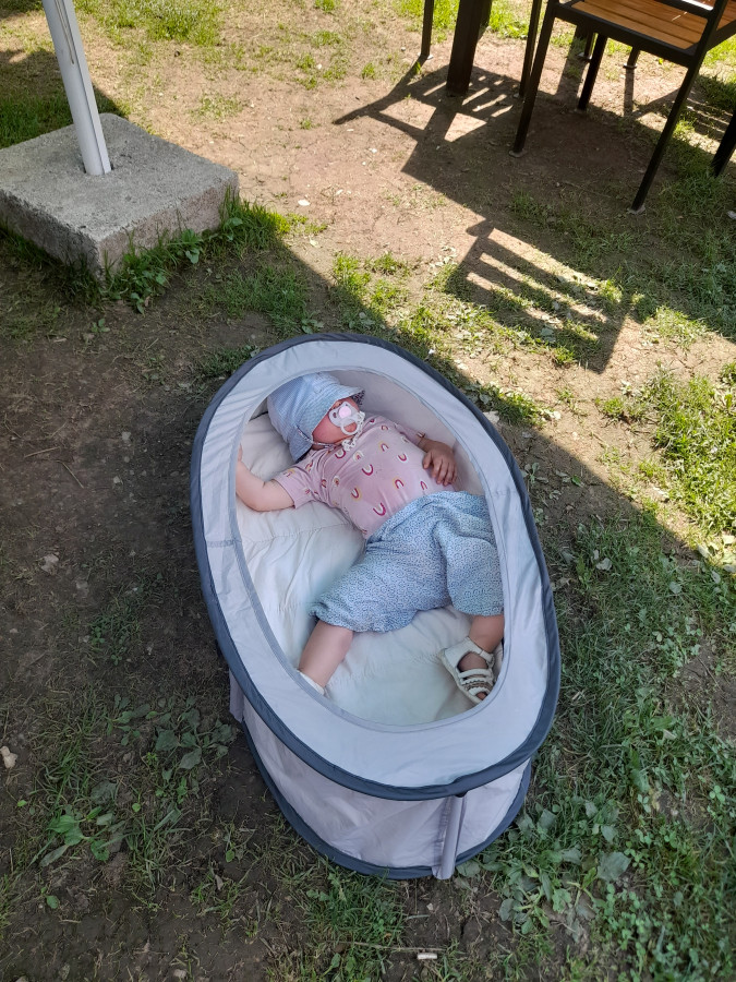 Elle a globalement été super cool parce que elle avait quand même un rythme un peu chamboulé, il faisait très chaud la 2eme semaine (et en porte bébé, mon dieu) et malgré tout, elle a été cool et souriante dans l'ensemble. Et s'est bien adaptée.