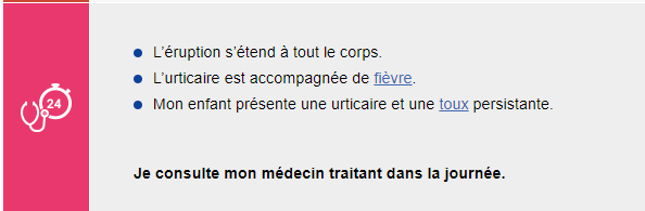 Hier, au réveil de la sieste l'urticaire avait pris de telles proportions + quasi 39 de fièvre + la toux qu'il se coltine depuis la fin de sa dernière pneumopathie que j'ai décidé d'appeler le 15 après avoir vu sur Ameli :