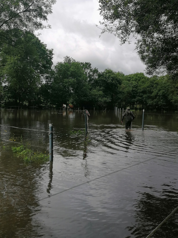 Dans le même temps, je checke la caméra pour surveiller mes chevaux (le bonheur cette caméra...) et la GROS DRAME, tout est innondé ! C'est arrivé le matin, je suis en salle d'attente du médecin, je suis en télétravail, ma collègue a pris sa journée. Je suis seule pour tout gérer et mes chevaux (Dont la pouliche de 10jours !) est dans l'eau....