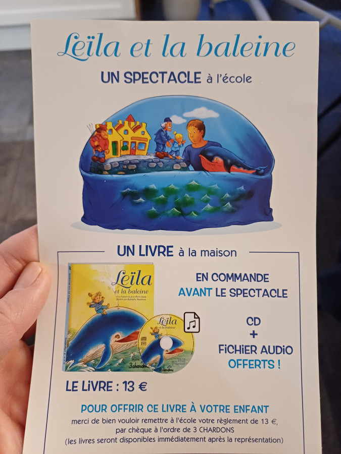 Mon fils va voir un spectacle avec l'école, et j'ai été très surprise ce matin en découvrant ce dont il s'agit : c'est Leila et la baleine! Je l'avais vu quand j'étais petite ! On avait le livre