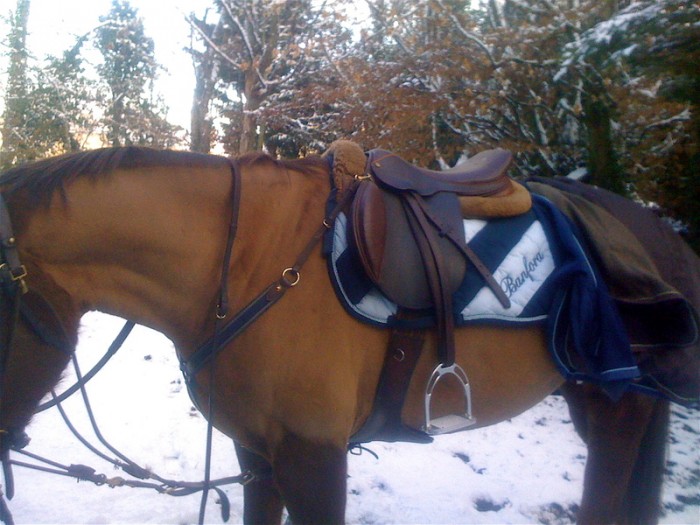 J'espère qu'il lui ira le bridon est un taille cheval et il est entre le COB et le cheval ...