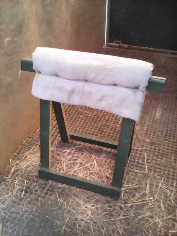 Voilà le tréteau dont je parlais sur lequel j'ai cloué un coussin de chaise :
