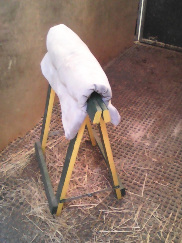 Comme ça pas besoin de cherche un tapis à mettre sous la selle pour ne pas abîmer la gouttière dès que je veux poser ma selle sur le tréteau. Et la selle gagne en stabilité.