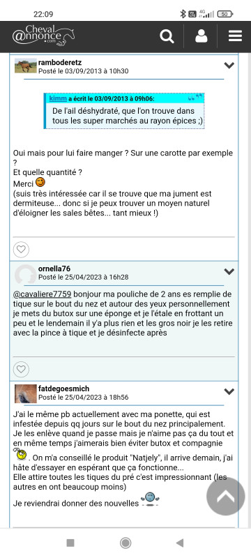 Un peu galère à mettre sur le bout du nez à cause de la texture (cela doit dépendre du niveau de patience du cheval aussi ), mais ce matin en repassant ma ponette n'avait plus aucune tique