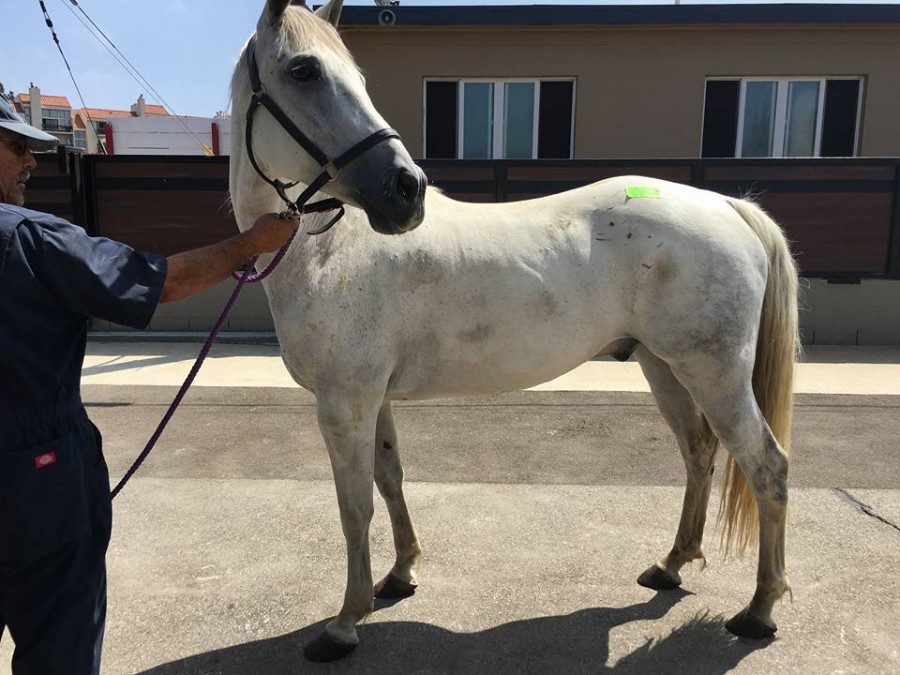 Roméo a pris un van pour faire Lyon -> Nord de la France. Il est resté 3 jours dans l'écurie du transporteur, avant de prendre la direction de l'Aéroport d'Amsterdam où il a embarqué. Arrivée à LA 11h plus tard, quarantaine pour 2 jours et demi, et il est remonté dans le camion direction la Baie de SF. Arrivée le soir du jour du départ de LA dans sa nouvelle maison, un pré avec 3 autres chevaux !