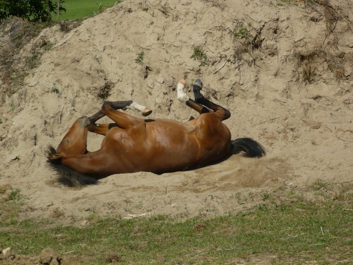 Cornille se roulant dans sa baignoire ..... bon il n'a pas les 4 pieds en l'air, mais .... la poussière vole