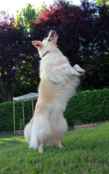 Kira, née en 2009, mais toujours dans l'adolescence. C'est une golden croisé epagneul. Très intelligente, mais....très brute. La délicatesse c'est pas son truc. Puis les câlins il a fallut attendre, car jeune, c'était pas ça. Mais c'est mon double canidé. Le même caractère j'vous dit !