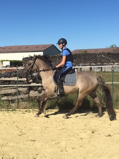 Il est formidable ce petit. Mon fils le longe un peu qu'il jette son jus puis il monte en selle et hop : pas, trot, galop, direction, frein .... Nickel !