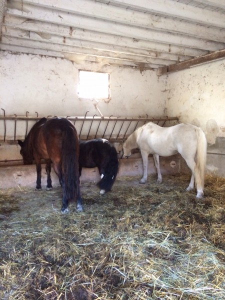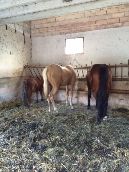 J'ai une brochette de fesses et c'est tout. Trop occupées le nez dans la mangeoire les filles ! On se serait cru dans la pub Yopa ! Tout le monde avait le crocs ! Même pas eu le temps de fermer la porte de l'écurie, elles sont rentrées trop vite ! Pourtant elles étaient a l'autre bout du pré quand je me suis garée !