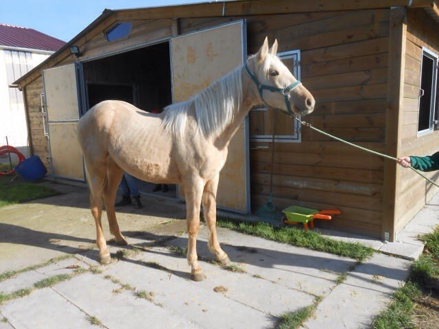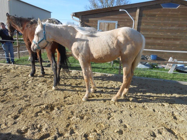 Je vous rassure mais elle a repris du poids là bas et elle est bien plus ronde maintenant. Pas de concurrence pour la gamelle dans son boxe donc ça aide.