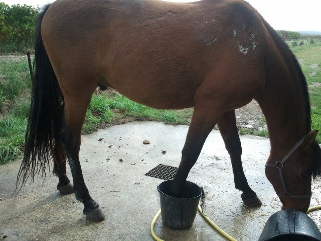 A son arrivée il a en effet constaté à première vue le boulet gonflé et la grosse douleur de mon cheval.