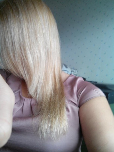 on voit bien que a cause d'un degradé, j'ai les pointes tres peu fournies (bien que absolument pas fourchuee et douces) et meme une faible masse capilaire.