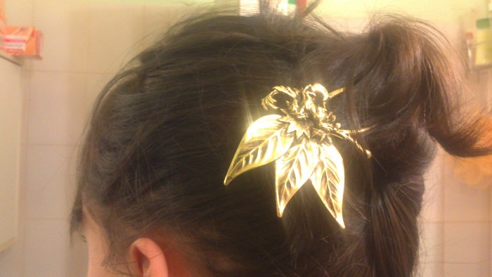 Sinon, samedi j'étais à cheval passion, et il y avait un petit artisan qui fabrique ses propres bijoux ! Dont des bijoux pour cheveux ! Evidemment, j'en ai acheté un ! Une jolie proche, avec un cheval dessus x) Par contre je sais pas si ça se voit bien sur la photo ^^