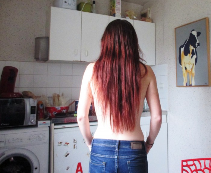 J'avoue que je commence à être contente de leur aspect.. Bon mes pointes sont encores trops fines, mais en ce moment j'ai un objectif longueur alors pas question de couper (et en plus, bizarrement, aucune fourche sur les mêches les plus longues)