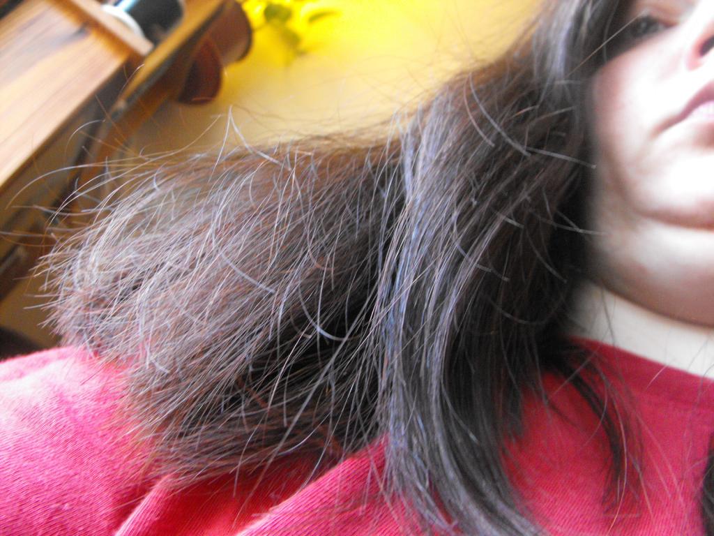 Petites photos pour illustrer. La première, avant mon passage au naturel, cheveux "plastique", ternes, plats.
