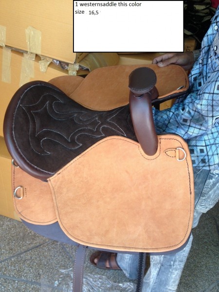 La selle a été commandée le 4 avril 2014 avec la selle australienne ( la seule conforme à ma commande ) et la portugaise qui devait être noire et bleue reçue en noir et gris. Les deux dernières ont été livrées le 24/09, on m'informe qu'il faut que je patiente encore 10 jours puisque la selle western a été "oubliée". Dix jours après ils m'envoient la photo de la selle que je dois recevoir et j'en reçois une autre. Ils ont quand même mis un tapis mais malheureusement pour eux j'ai déjà des tapis western, cela m'en fait un de plus dans la collection.