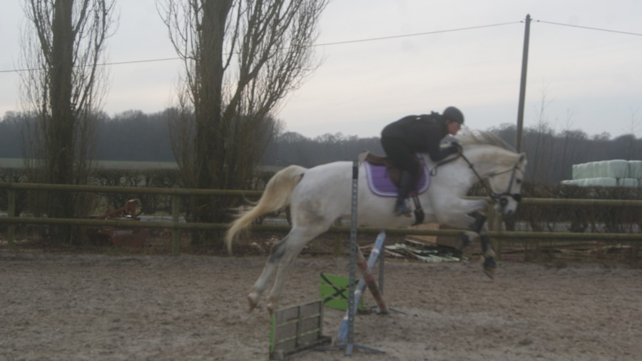 aujourd'hui séance de saut depuis bien 2 mois qu'on avait pas sauter, on enchaine un petit tour pas très gros , mais on travail les virages avant/après car monsieur a tendance à se désunir a la réception.. et on travail les virage "court" car il à du mal à s'enrouler autour de ma jambe et à plus tendance a se plier mais à fuir complétement..