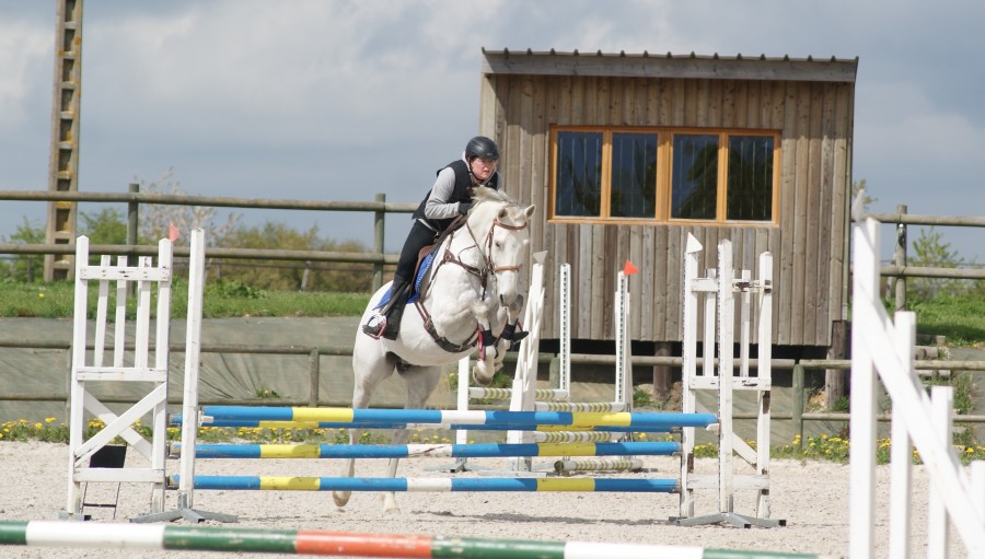 entrée au trot sur le saut de puce rose ensuite on reste au galop , on passe entre les plots puis on part en cercle pour aller sauter la croix du milieu.. puis on repasse entre les plots et direction les sauts de puces bleu.