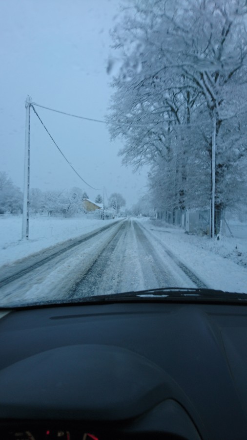 La pauvre, j'ai failli lui mettre un vent ! Comme il se met à neiger, je lui envoie un sms pour savoir si ça tient toujours, elle me dit qu'elle se met en route donc moi aussi.