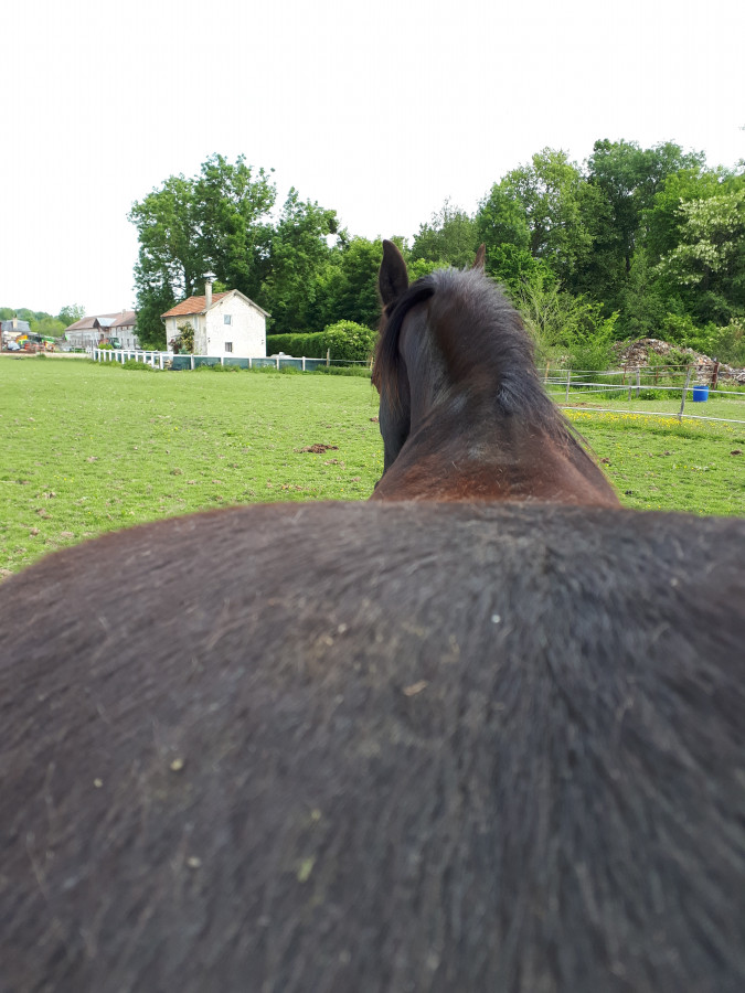 Ce soir, j'essayerai de le faire marcher un peu, faire le tour de l'écurie pour voir comment il se débrouille. J'ai réussi à obtenir un rdv ostéo pour vendredi après-midi. Donc si tout va bien, on pourra reprendre les balades en main ce week-end.