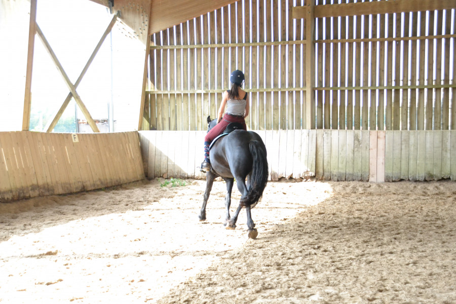 Je retrouve le loulou que j'ai essayé qui se met en place petit à petit. Il commence a trouver son équilibre et monte son dos. Je n'ai rien dans les mains, c'est un régal.