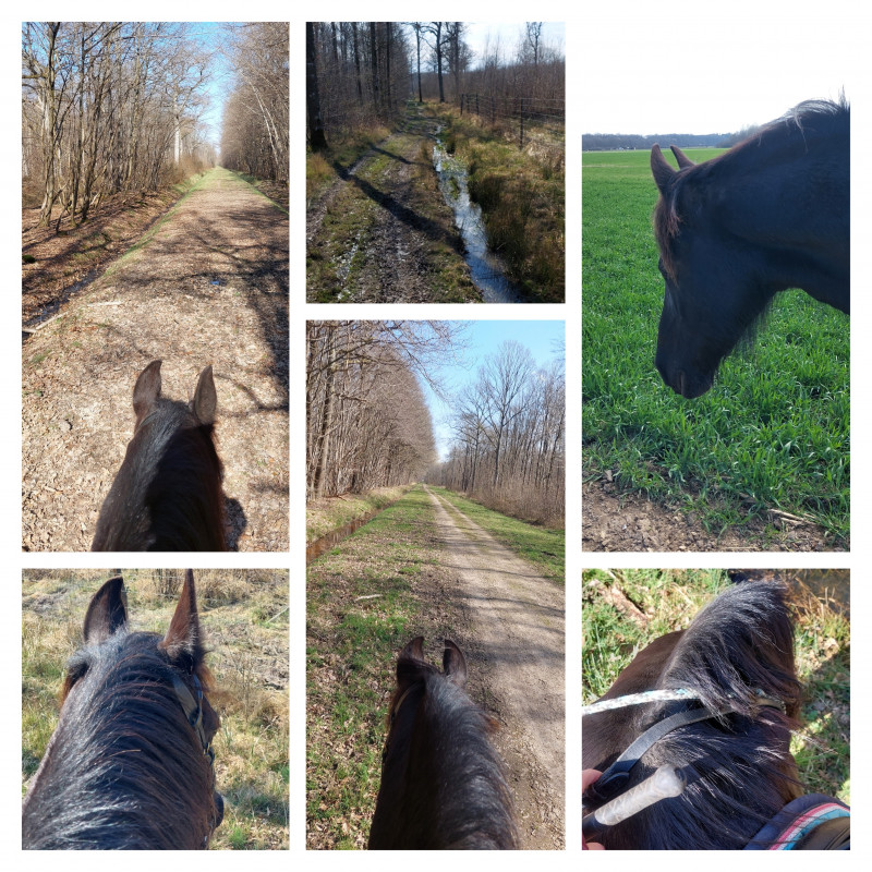 Dimanche, chéri voulait profité du beau temps pour sortir l'après-midi donc il m'a demandé si je pouvais aller m'occuper de Frits le matin. On s'est donc fait une balade montée en tête à tête. J'ai pris 5 min avant de partir pour vérifier que les codes étaient ok en selle, pour me rassurer et go. J'ai essayé de pas trop réfléchir pour pas me mettre la pression et ne pas la mettre à Frits.