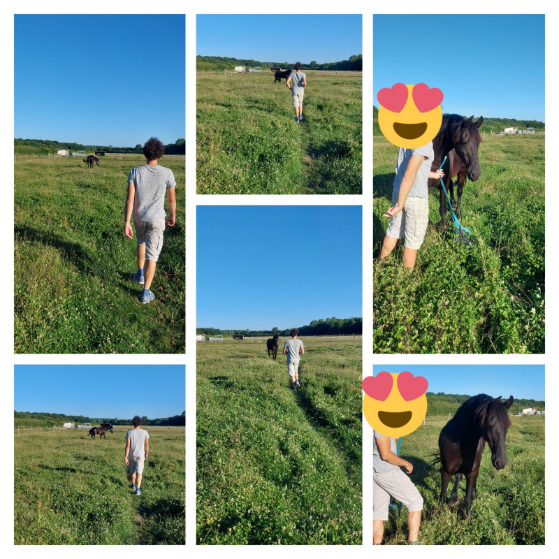 La deuxième semaine j'ai beaucoup travaillé à pied avec lui, en licol étho et ça m'a aidé à m'affirmer.
