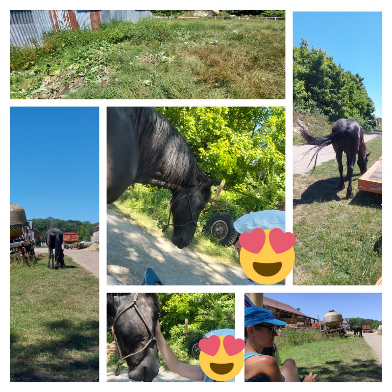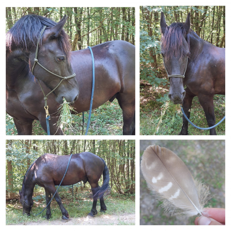 Samedi : mini tour en main à son rythme, et en fonction de son envie. Il a passé 40 min à brouter à l'entrée de la forêt. Chéri était venu avec son vélo, il a fait un tour et nous a retrouvé à l'endroit où il nous avait laissé.