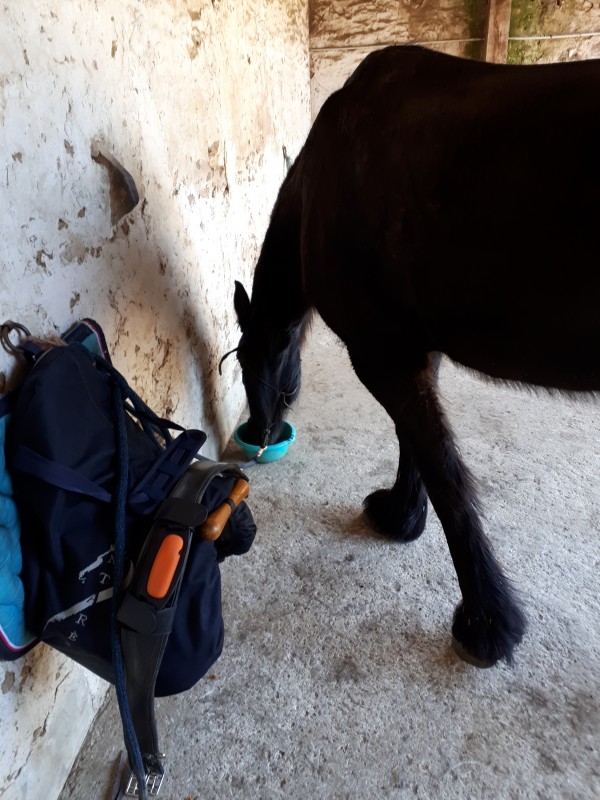 De retour à l'écurie, il a enfin pu avoir sa gamelle, je peux vous dire qu'il l'a entendu de loin :