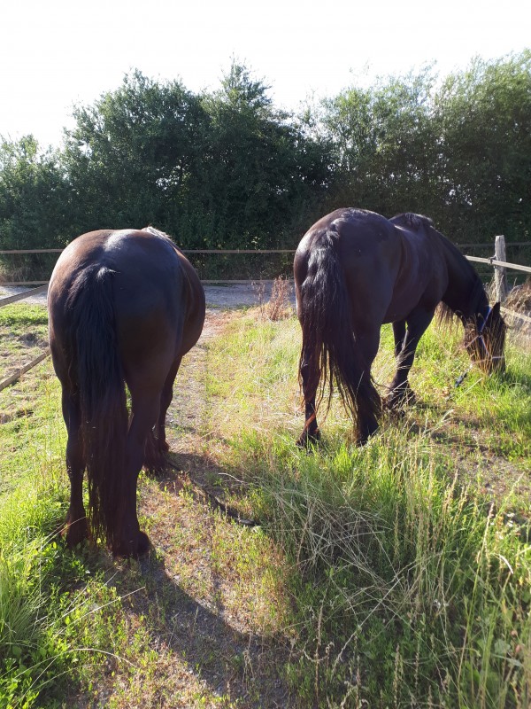 Frits un peu surpris de voir qu'il n'est pas le seul à bénéficier de mon attention mais il suit sagement. Lueke bugue un peu dans le pré et stoppe net 2 fois, mais je pense que c'était plus lié à des taons qu'autre chose car après, il ne l'a plus refait du tout.