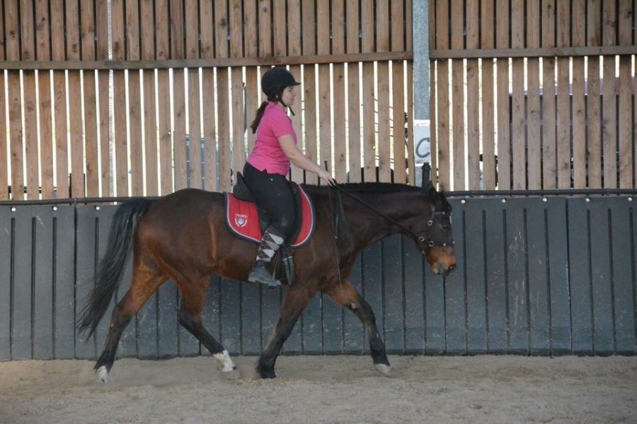 Je retrouve le loulou que j'ai essayé qui se met en place petit à petit. Il commence a trouver son équilibre et monte son dos. Je n'ai rien dans les mains, c'est un régal.