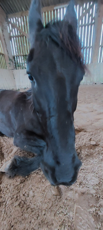 Sur un autre forum spécial frison, j'ai aussi beaucoup communiqué avec des proprios de frisons, et notamment une proprio qui m'a beaucoup aidé. Elle m'a décortiqué les réactions de la nouille et m'a montré que j'avais déjà les réponses. Fallait juste que je me décoince.