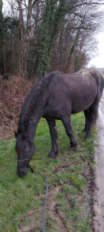 Chéri a pu y aller plus tard dans l'après-midi quand la neige a cessé et que les routes ont commencé a être dégagées. Poney allait bien, il était frustré du manque d'herbe apparemment.