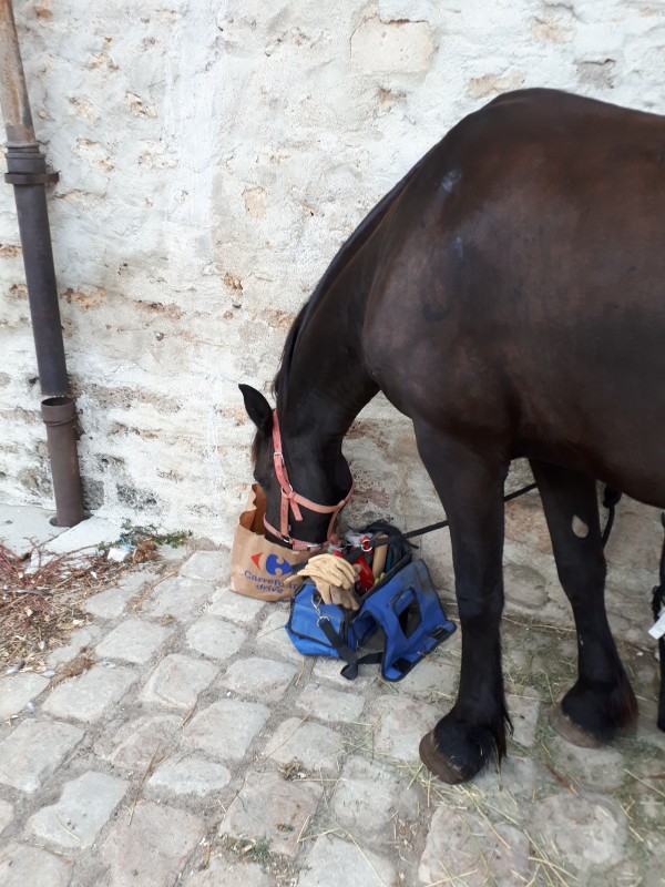 A voir si la ration d'hier était un fond de cuve ou si c'est le mélange habituel. Dans le pire des cas, ils ont du granulé à dispo donc on négociera pour le granulé sinon on se trouvera un sac d'orge pour ses repas.