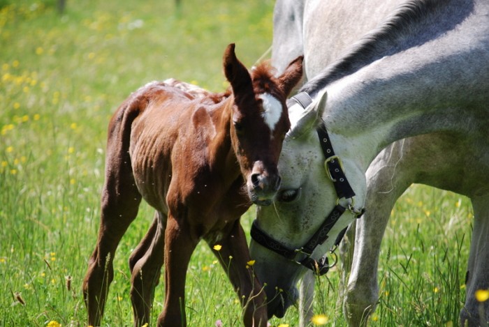 (on y voit une maman surprise quand son petit fonce dans la barrière, sans gravité. Et un bébé intrigué quand maman se roule.