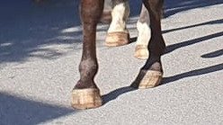 Durant un orage c'est la panique au pré, surement un coup et le lendemain = "tendinite": plus eaxctement lésions sur la bride carpienne sur l'antérieur gauche et gros hématome qui ne pars pas mais pas de boiterie (était boiteuse du pied droit lors de la transition pied nu). Donc changement de pension mise dans un petit paddock (900m² quand même) très dur et en cailloux = impeccable ! Marche de mieux en mieux mais pousse énormément, je fais donc un petit parage d'entretien mais çà redevient bof, pas boiteuse mais pas à l'aise (surement barres trop longue ou roll pas assez prononcé je ne sais pas). Puis elle repéte un câble car seule et en chaleur (vive les juments), obligée de faire 15 jours de boxe avec 1 à 2h de sortie pour brouter on marche dans la plaine et sur le bitume, et là çà dégénère progressivement ne marche plus du tout sur les cailloux et pas à l'aise, on approche des 10 semaines de parages (+ mes entretiens entre quand même !) ... Ma pareuse vient pendant cette période de boxe, depuis raide boiteuse ... Parage surement trop sévère mais elle l'avait déjà bien vécue avant. Ma pareuse me dit qu'il va falloir trouver sa zone de confort et y aller plus molo sur le scoop. Moi je dirai plus molo sur la fourchette et les talons mais bon je n'y connais rien, c'est "juste" un ressenti, d'ou ma remise en question, je ne suis sûr de rien ...