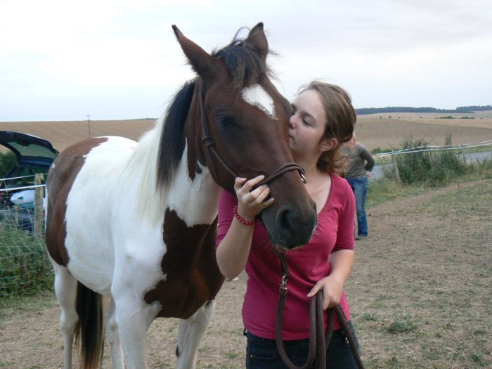Donc Kiona dans tout ça me prenait toujours autant de temps. J'avais mon cheval, c'est vrai, mais je continuais à prendre tout mon temps pour elle. Je l'aimais toujours autant mais c'était devenu un amour déchirant .. J'ai vraiment souffert de cette situation. J'étais impuissante à l'idée de voir l'éleveur faire n'importe quoi avec elle alors que j'essayais tant bien que mal d'établir une relation avec elle. Je passais derrière et forcément nous faisions un pas en avant et 20 en arrière. Une pouliche qui se cabrait, qui chargeait, qui tapait .. Elle m'en a fait des frayeurs. Honnêtement, j'étais au départ, dans "l'obligation" d'y aller à cheval .. J'empruntais un poney à cru en licol dans le parc d'à côté et hop on allait voir la belle !