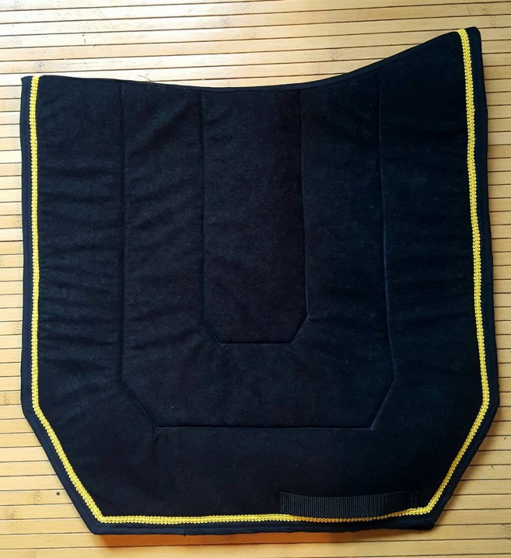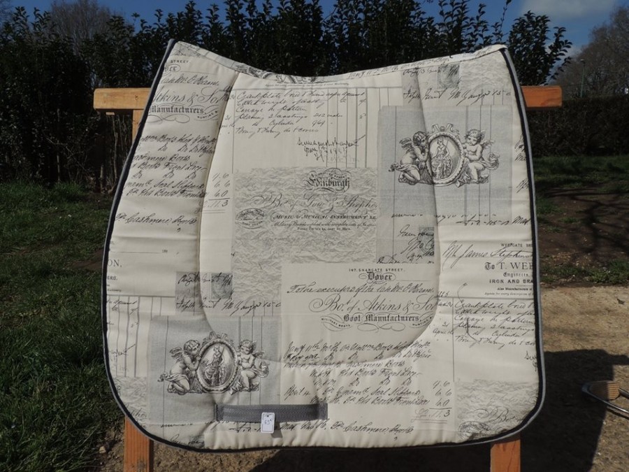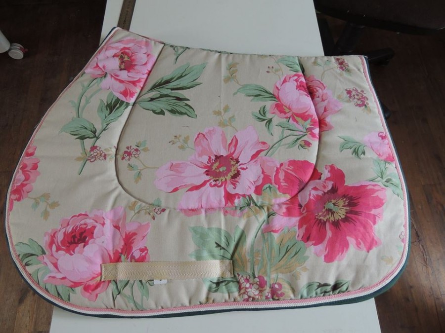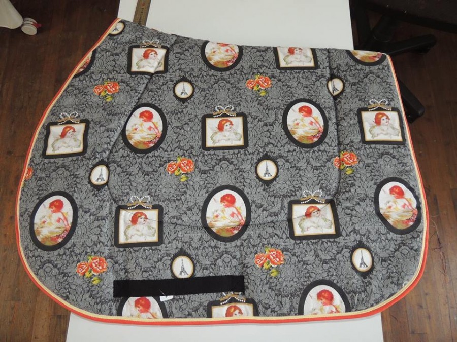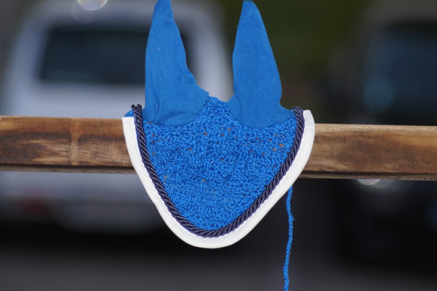 Je suis en mode création. Après le 1er bonnet de concours créé pour ma jument (cf p62) pour l'assortir à son tapis, je suis en cours du 2ème bonnet de concours. Il sera couleur bleu marine avec une cordelette blanche. Pour le côté fantaisie, j'ajouterai quelques perles de couleur. Je vous mettrai des photos quand je l'aurai fini.